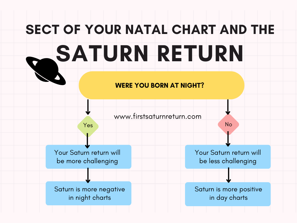 Being born during the day or at night can give clues about your Saturn return. In short, those born during the day will have a more friendly Saturn return, while those born at night will have a more complex one.