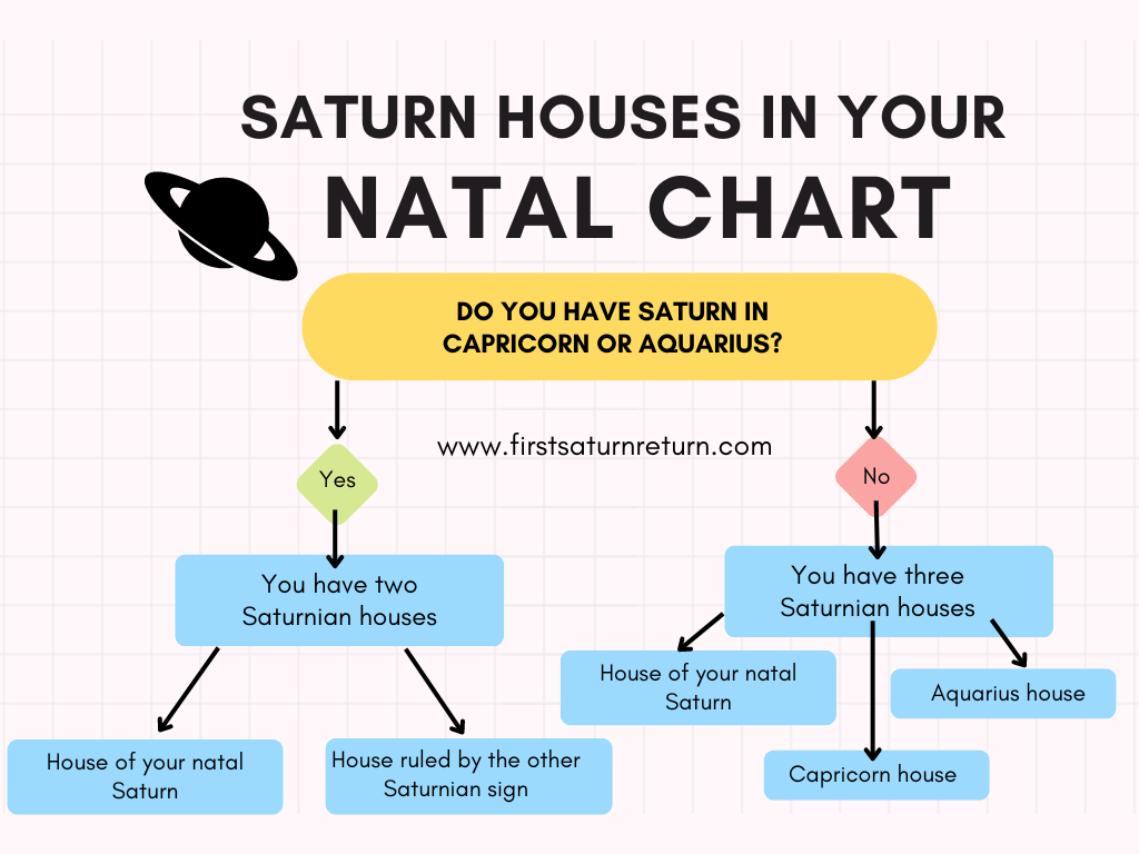 Besides knowing the house in which your natal Saturn is, you’ll have to check the houses inhabited by Capricorn and Aquarius, the two signs ruled by Saturn.