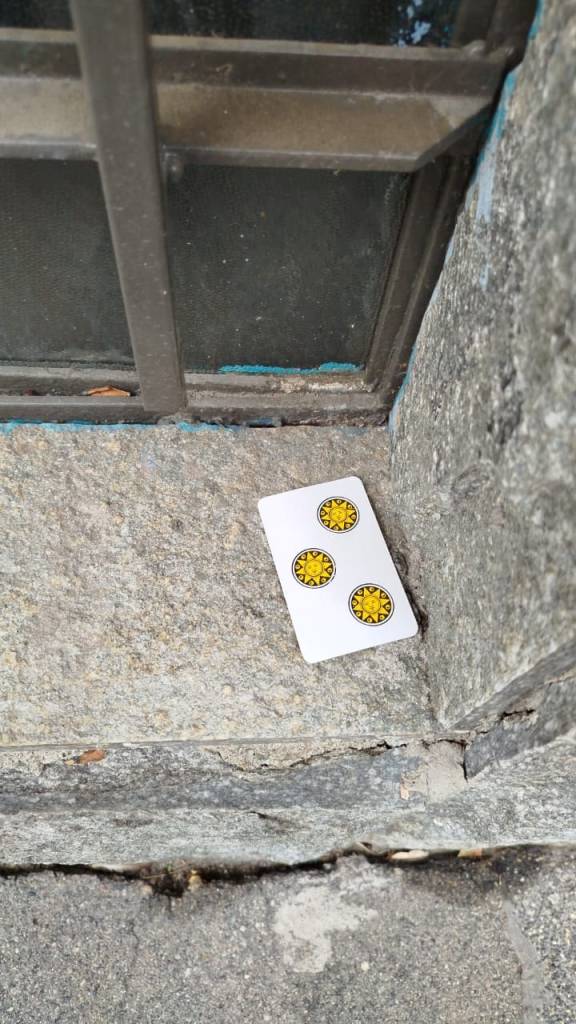 I found this on the street right after finishing this text. The 3 of Pentacles is connected with developing skills. Choose one and nurture it in the autumn