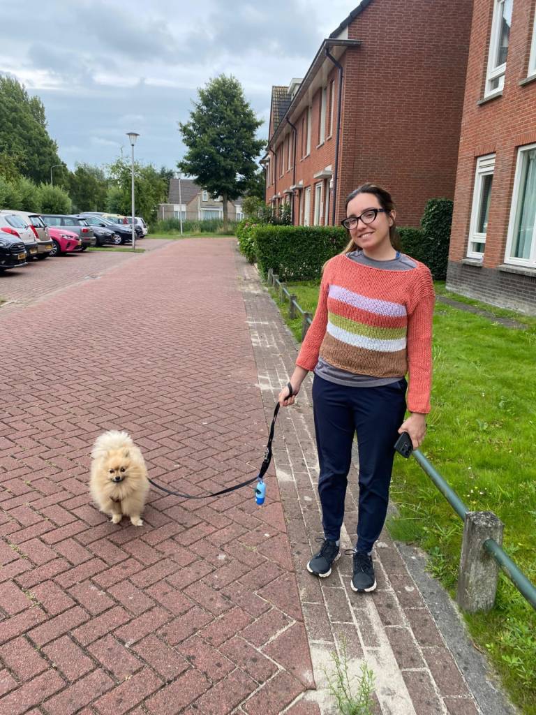 This is me in the Netherlands, pet-sitting Mandela, a lovely pomeranian: